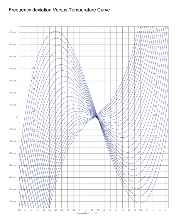 The stability tolerance is the maximum allowable deviation from the nominal frequency over a specified temperature range and expressed in terms of ppm. This factor is dependent upon the angle of cut, see AT-cut temperature curve below.